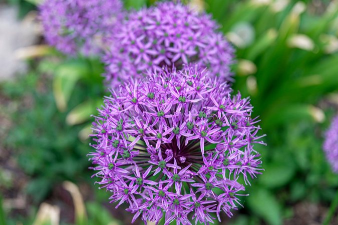 Spring-blooming alliums (like Allium giganteum and ‘Purple Sensation’) grow from true bulbs and are planted in the fall, just like tulips and daffodils. These bulbs go dormant over summer and re-emerge the following spring.