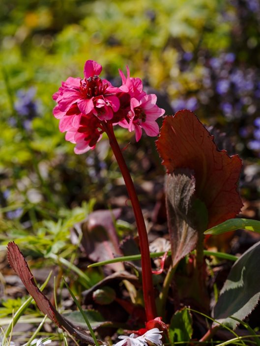 - For a spectacular floral display in late winter and early spring, combine bergenia with other early bloomers such as hellebores, winter aconite (Eranthis hyemalis), crocuses, and snowdrops.