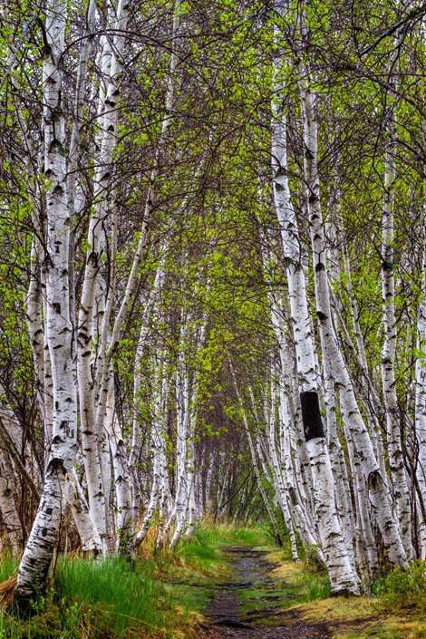 Birches grow on either side of this path in Acadia National Park. Photo by: J.K. Putnam / Alamy Stock Photo.