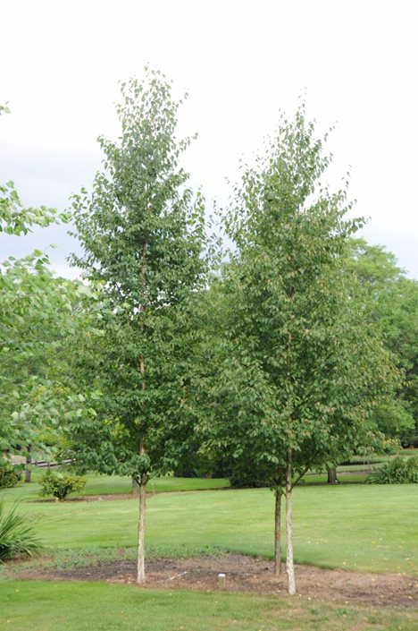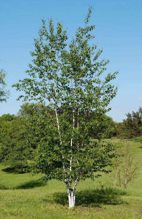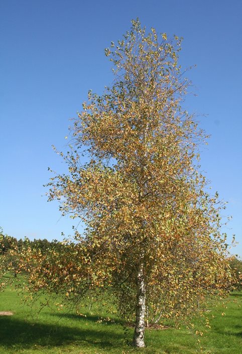 Notable for its lustrous dark-green foliage and uncharacteristically white bark, which rivals that of B. papyrifera. Also drought tolerant, borer resistant, and more adaptable to higher-pH soils. In fall, the foliage takes on a lovely golden hue.