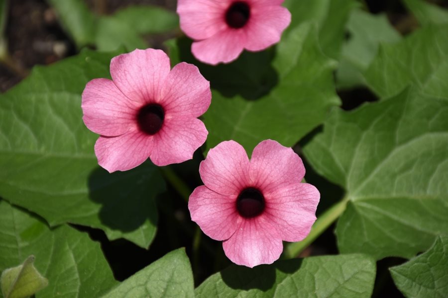 If container gardening is your passion, this cheerful dark-eyed bloomer can function as both a thriller and spiller element in pots or hanging baskets, climbing up a support or cascading over the sides, whichever way you let it wander.