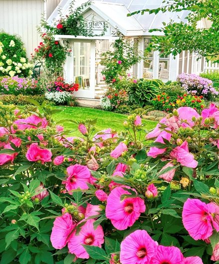 Proper spacing between plants needs to be taken into consideration in many cases, but it’s okay to push the boundaries a little. At Tracy’s, blooms and gorgeous foliage burst from containers and garden beds, the fullness creating a sense of vibrancy throughout the garden. “Because of my zone, 5b, I don’t have to worry about a long growing season where the plants crowd each other out,” says Tracy. “I do like to put plants very close, and they tend to grow up and out...I love that they intertwine! I prune back the plants that tend to be bullies and give the others a chance to grow.”