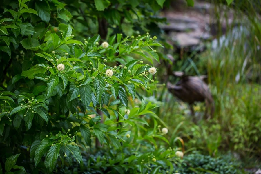 - Site buttonbush in a low area of your yard where water collects for an easy-care solution to boggy soil.