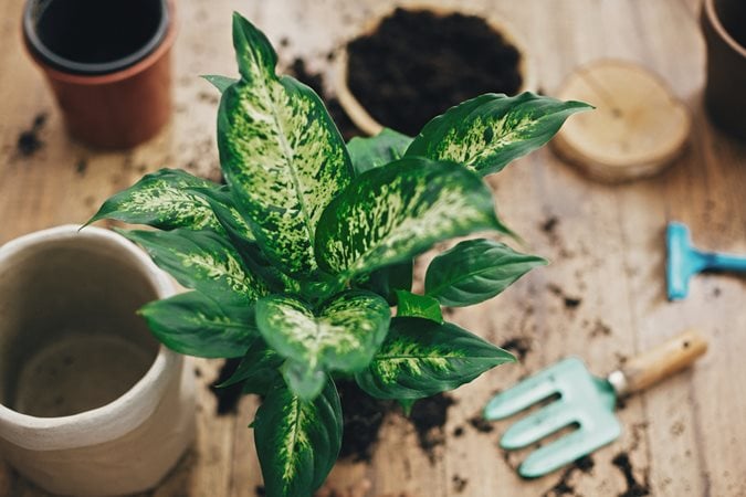 Many tropical houseplants, like pothos, philodendron, and arrowhead vine, prefer humidity levels above 40%, which is hard to maintain in most rooms of the home, with the exception of a steamy bathroom. To raise the humidity around your plants, run a humidifier, mist the leaves occasionally, or set their pots on a shallow tray or saucer filled with pebbles and water (making sure the bottom of the pot is not sitting in the water).