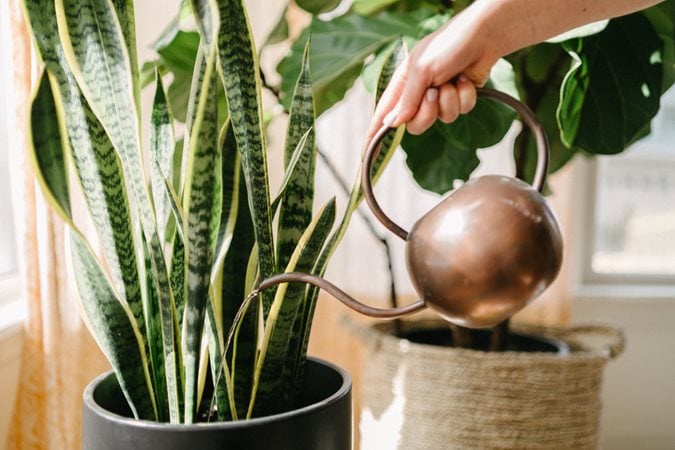 Proper watering is key to keeping your houseplants healthy, but knowing when and how much to water is often a matter of trial and error. Rather than counting the days between waterings, use your finger as a moisture meter and poke it into the top inch or two of potting mix. If the soil feels dry, it will be time to water most houseplants, with the exception of cacti and succulents, which can usually go longer between waterings. Also watch for visual clues that your plants need water, like leaves that are beginning to wilt or droop.