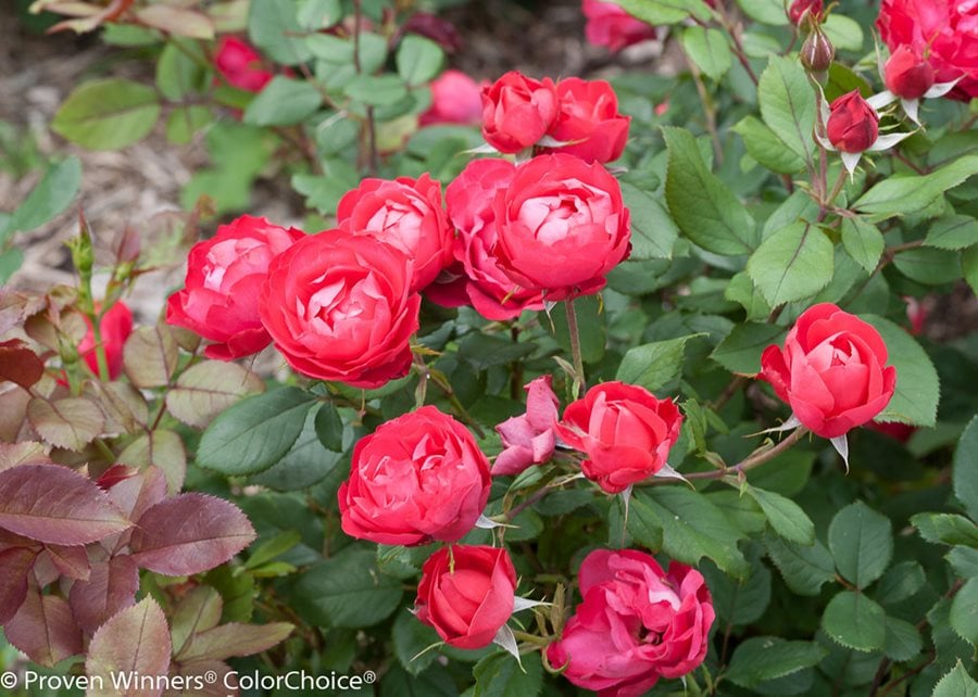 Limiting the number of rose varieties you grow will help you avoid creating a disorderly and mismatched array. Oso Easy Hot Paprika® landscape rose. Photo by: Proven Winners.