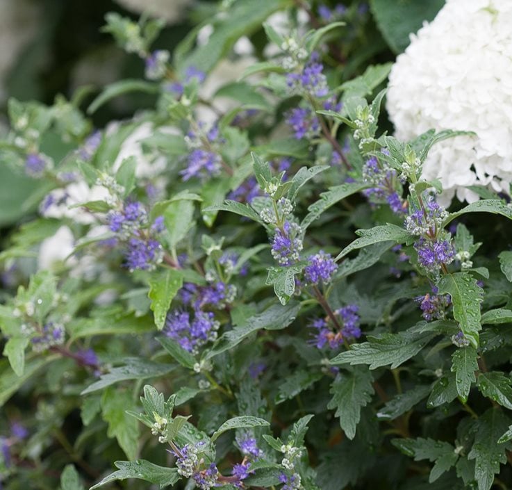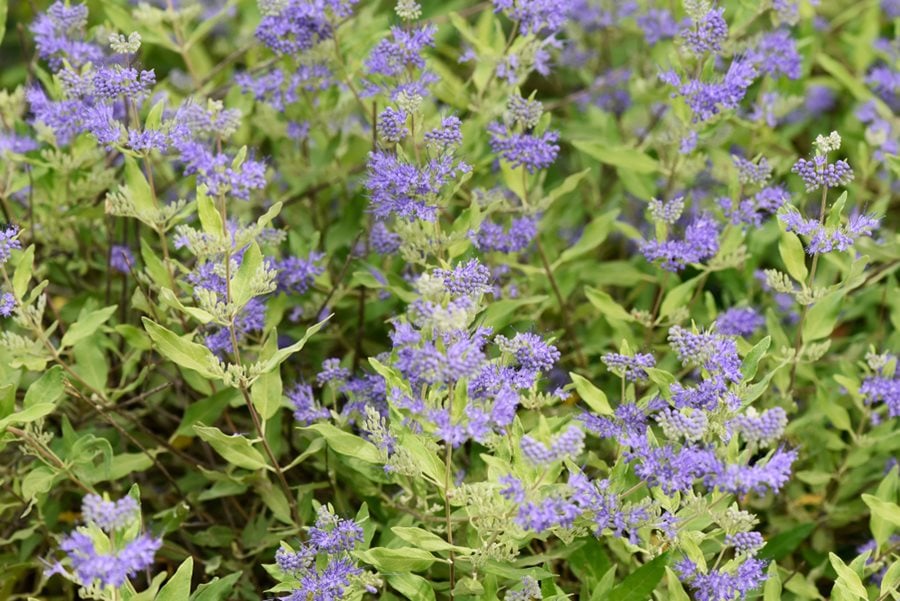Bluebeard, blue mist spirea—although not related to spring- and summer-blooming Spirea