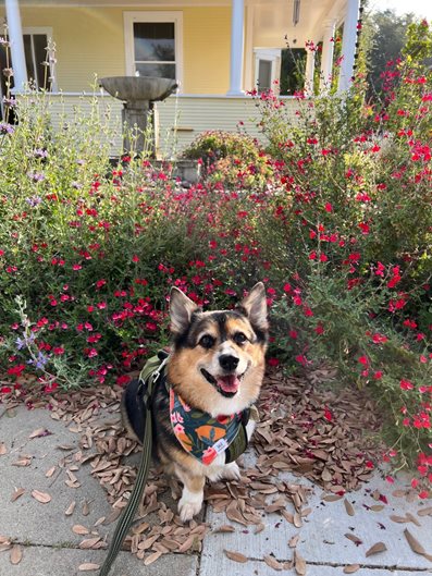 "On the first day of spring, my corgi Wesley loves to stop to pose with all the blooming flowers we see on our walk! It’s a good reminder to take a minute and enjoy the changing of the season."