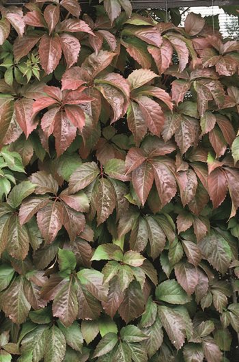 Virginia creeper is distinguished by the five-lobed leaves, showy blue fruits, and brilliant red fall color. This deciduous woody vine has a vigorous growth habit that is useful for quickly covering large garden structures. Virginia creeper is tolerant of different growing conditions, including clay soil.