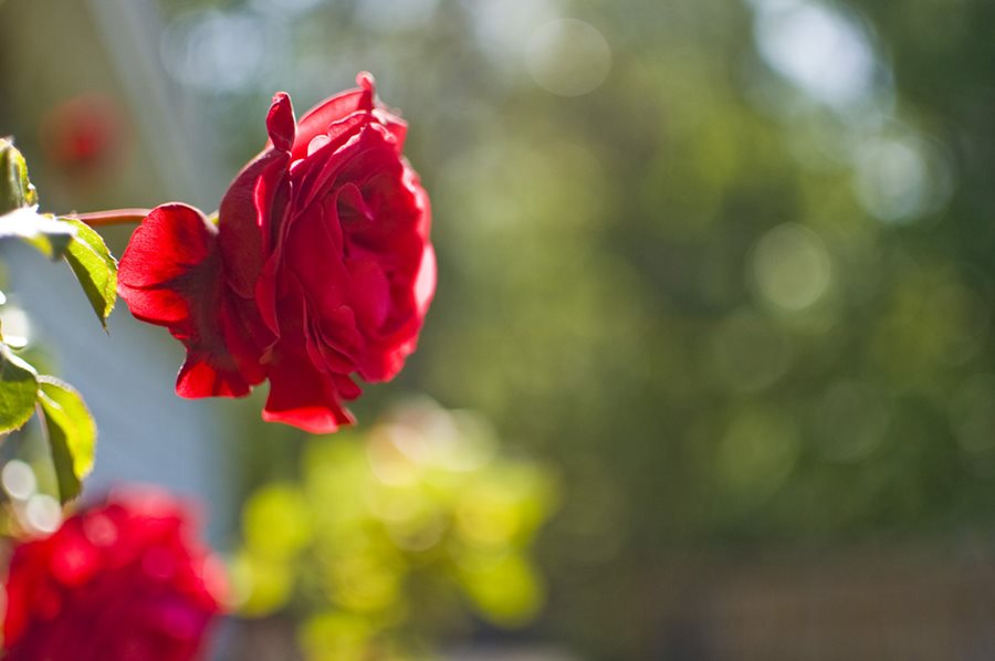 Climbing roses require a sturdy structure that they can be secured to, as they don’t have tendrils to attach themselves and they do not twine. Hand-tie the branches to the structure with stretchable fasteners so the growing canes are not damaged.