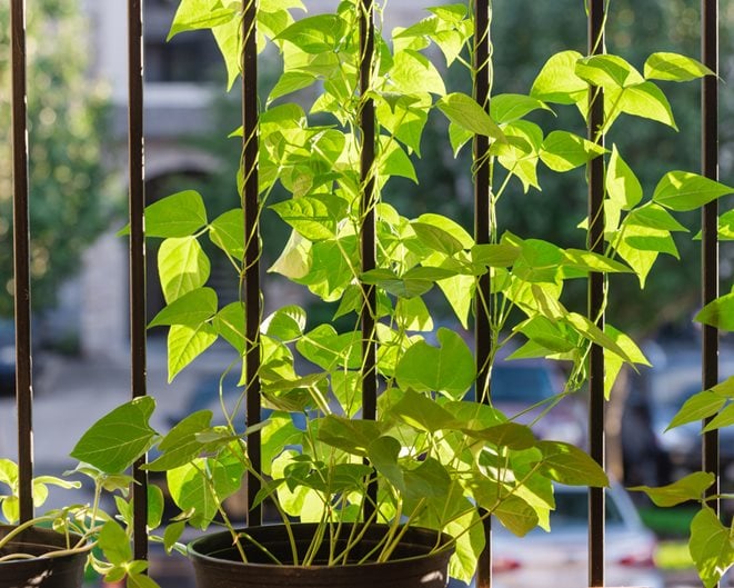 Bush beans are easier than pole beans, but both can be grown in containers. Replant bush beans every two weeks for continuous harvest. Provide a trellis for pole beans at the time of planting.