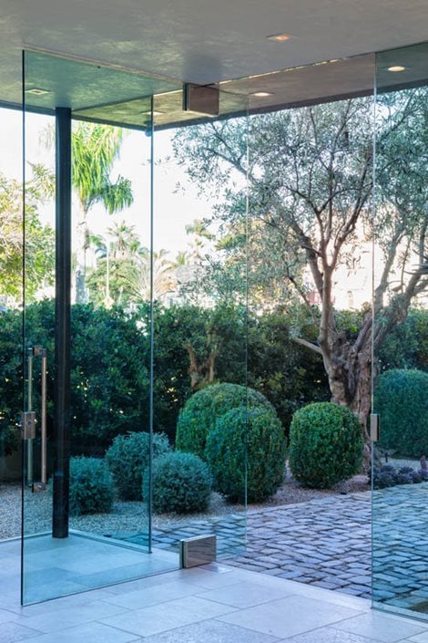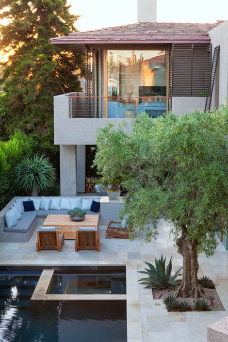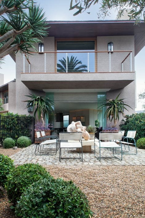 The harmony between a Coronado beach house and its garden is all in the detailsLos Angeles designer Scott Shrader is known for rich but refined landscapes that mix natural materials in a range of subtle hues. At a property in Coronado, California, he combined a palette of stone, metal, and wood with olive trees and succulents to create garden spaces that flow seamlessly around a contemporary glass-and-stucco house. The house, designed by Island Architects, is a block from the beach and has floor-to-ceiling glass windows and doors that make it so transparent that “the line between indoors and out disappears,” Shrader says. As a result, the gardens had to relate completely to the interiors, and feel comfortable while standing up to the strong, modern building.