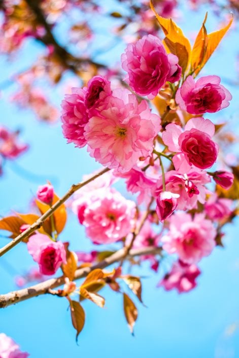 Single, semi-double or fully double in white, pink, magenta, or red. Very fragrant. Many varieties have darker buds that lighten in color as the flowers reach full bloom.