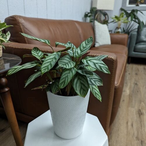Because Ctenanthe is a rainforest plant, it loves consistently moist but not waterlogged soil. For the best results, water thoroughly when the top 1 to 2 inches of soil feels dry to the touch, allowing the excess water to drain from the bottom of the pot. Do not allow your plant to sit in standing water, which can result in chlorosis (yellowing of the leaves) and root rot.