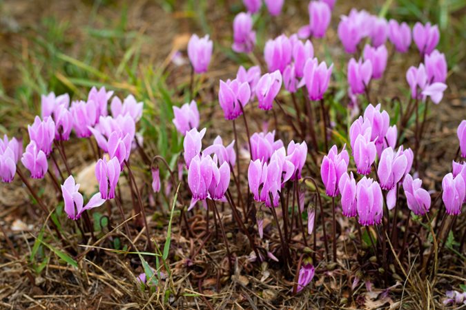 Good substitutes for cyclamen include spring- or fall-blooming crocus, species tulips, and snowdrops.