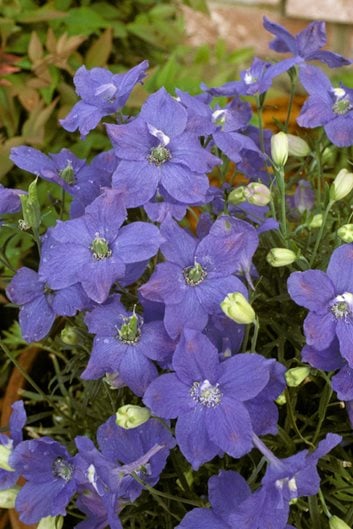 - Grow tall delphiniums at the back of a mixed border or as a centerpiece to an island flower bed for vertical accent.