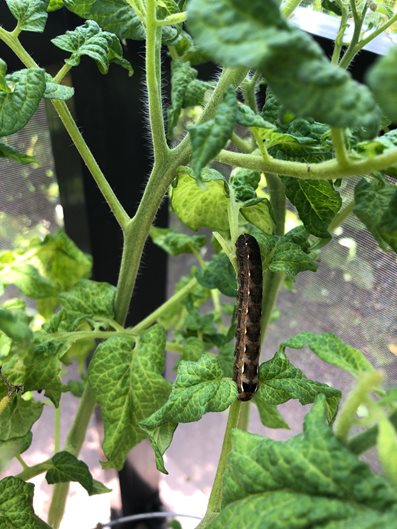 This can be caused by hornworms, the larvae of five-spotted hawk moths. These large caterpillars 3-4 inches long can consume a large quantity of leaves and stems, decimating an entire plant in a short amount of time.
