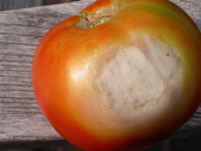 As fruits develop and ripen, yellow patches form on the skin, turning white and becoming paper-thin. This creates an unattractive appearance and poor flavor. This is likely due to sun scalding.