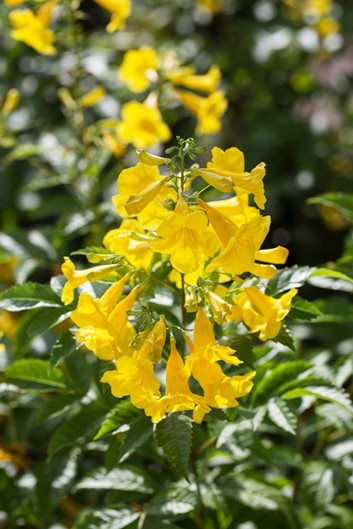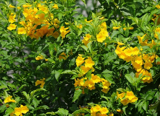 Esperanza, trumpet flower, yellow trumpetbush, yellow bells, yellow elder, Tecoma plant, ginger-thomas, and yellow bignonia.