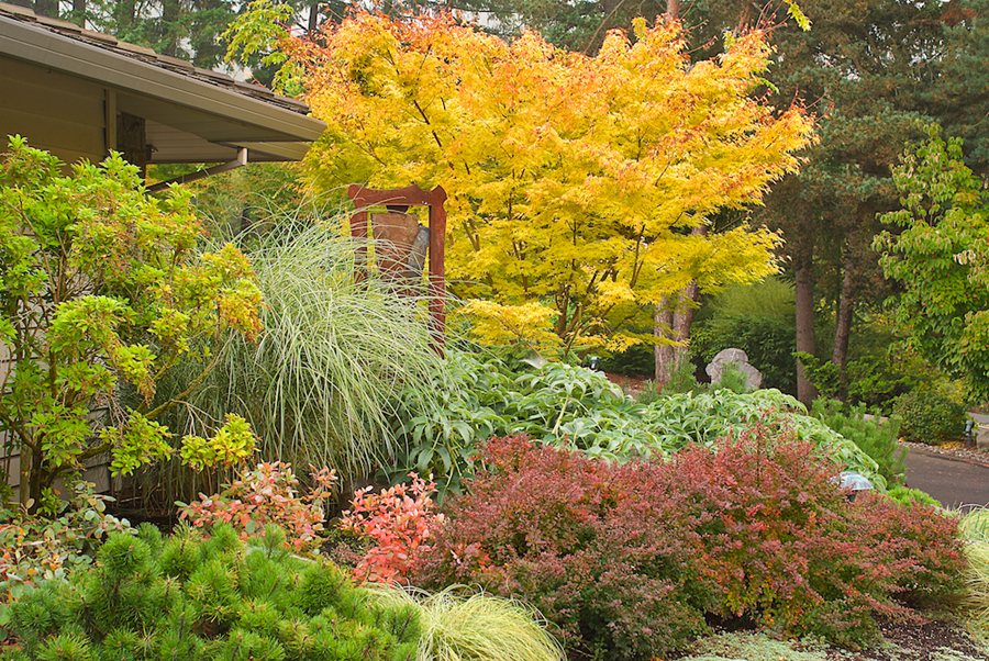 This small urban yard is packed with fall color, with added color from nearby street trees. Designer: Marina Wynton. Photo: Janet Loughrey.