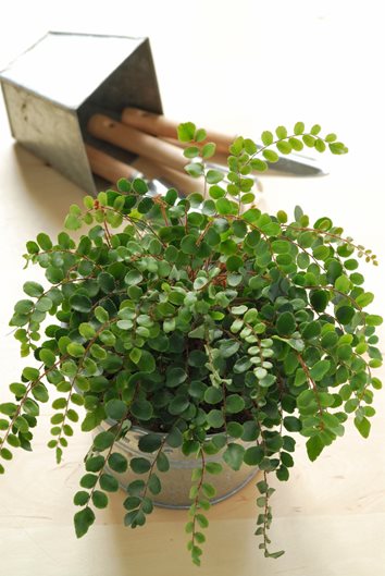 Button fern is a New Zealand native with tiny button-shaped leaflets that occur along the entire length of the delicate stems. The arching fronds can reach up to 18 inches long, while the green leaf stalks turn dark red as they age. This petite evergreen fern can be displayed as a tabletop accent, in a hanging basket or decorative pot.