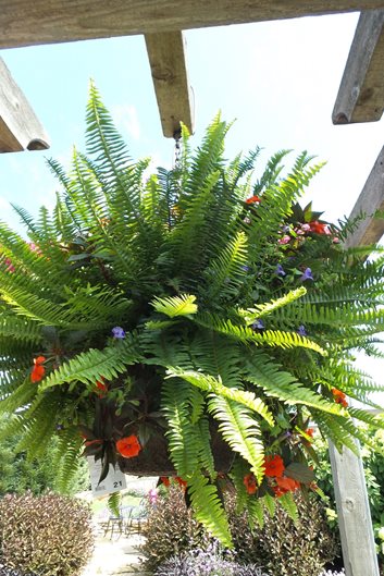 Boston fern is characterized by dissected lance-shaped green leaves and a uniform mounding habit. Popularized during the Victorian era, this tropical evergreen fern is grown as a houseplant and commonly displayed outdoors during summer in hanging baskets or containers.