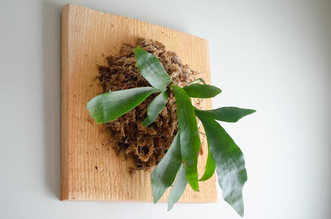 Staghorn fern, named for the thick green fronds that grow in an antler-like structure, is a slow growing epiphyte typically grown on a plaque. This tropical, native to Australia and Asia, is slow growing, but becomes an impressive size once it reaches maturity. Display as a decorative accent on a wall or fence outdoors in warmer months and overwinter indoors as a houseplant.