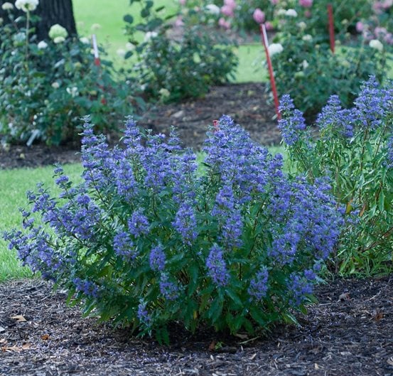 Bluebeard is a compact, drought-tolerant shrub that lights up the late-season garden with clouds of true-blue flowers. The fragrant blooms attract pollinators, while the aromatic foliage adds texture from spring through fall. Easy to grow and deer resistant, it's ideal for borders, mass plantings, or containers. Learn more about how to grow bluebeard.