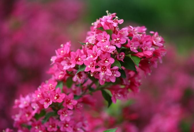 Gardeners love this popular shrub not only for its abundance of white or pink flowers on arching branches, but also for its unflappable nature and reliable performance. The trumpet-shaped flowers are a favorite of bees and hummingbirds, and often continue to bloom in scattered fashion from mid to late summer. Learn more about growing weigela shrubs.