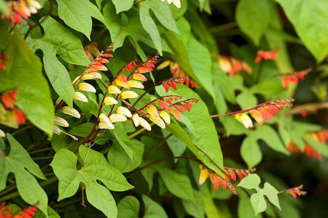 Trumpet vine, also known as trumpet creeper, is one of the best flowering vine plants to attract hummingbirds and butterflies. Lush serrated foliage provides an attractive backdrop to clusters of large funnel-shaped flowers in colors of red, orange, or yellow that appear in summer. Use this deciduous vine as screening on an arbor or pergola large enough support its weight.