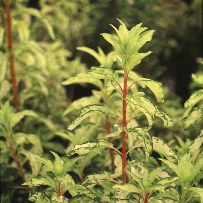 Grown primarily for the bright yellow blooms along the length of the branches in early spring before the foliage appears. Leaves are green or variegated, and pointed with a serrated edge. Fall foliage is generally insignificant, though it can take on purple, red, or yellow tinges.