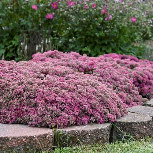 One of the most popular mid- to late-season perennials, stonecrop is easy to grow and thrives in a wide range of growing conditions. The green, blue, red, purple, orange, yellow, or variegated foliage is attractive on its own, while the flowers appeal to a wide range of butterfly species and other insect pollinators. Clusters of tiny star-shaped flowers occur in various colors.
