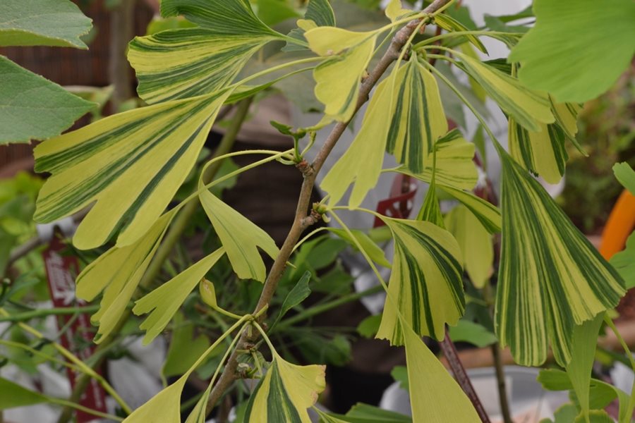 Ginkgos are classified as non-flowering gymnosperm plants. Male trees have tassel-like green cones bearing pollen that occur in clusters along the branches. Females produce green shoots in vase-shaped clusters that appear alongside new leaves in spring. Once fertilized, the slender tubular shoots develop small rounded fruits at the tip.
