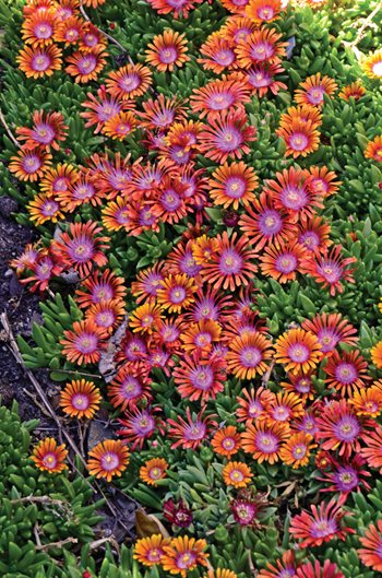 Plants to try: Fire Spinner® (orange, red, and lavender blooms; pictured), ‘Cooper’s Hardy Ice Plant’ (magenta-pink flowers), 'Jewel of the Desert Moonstone' (snow-white with yellow centers)