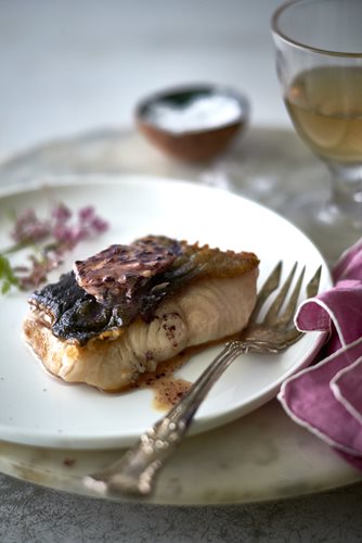 - Transfer fillets to plates, squeeze a bit of lemon over and top with a ½-inch-thick slice of nasturtium butter.