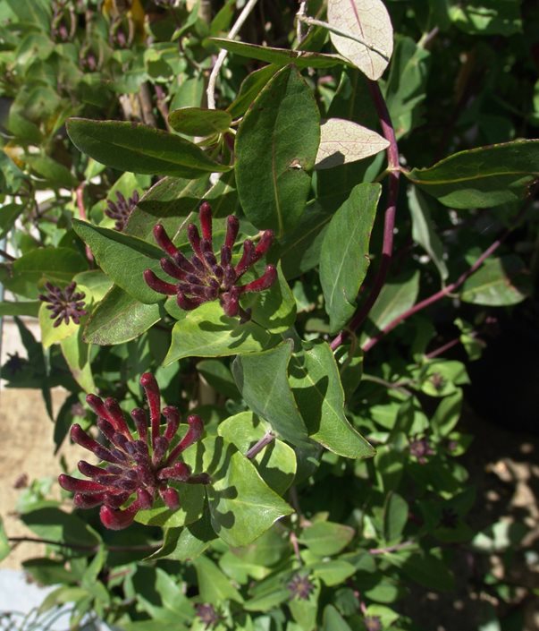 - Common honeysuckle (L. periclymenum ): Also known as woodbine, common honeysuckle is a large deciduous vine prized for its intensely fragrant multi-colored blooms. This native of Europe and Asia has become naturalized in some areas of North America, including New England and the Pacific Northwest.
