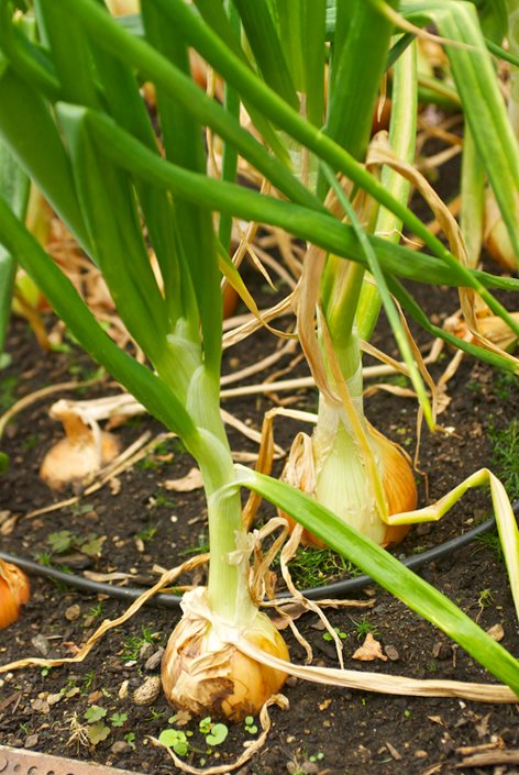 Onions can be grown from seed, but are easiest from bulbs. Garlic is grown from cloves, while potatoes are produced from tubers.