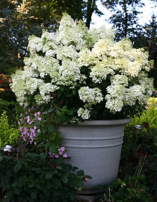 - Panicle hydrangeas can be maintained as good-sized “trees” in large pots.