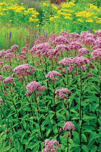 Dutch designer Piet Oudolf grows Joe Pye weed on his own property alongside other perennials and grasses in a random fashion that appears natural.