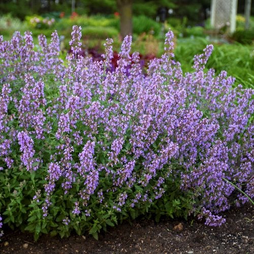 Aromatic foliage, long-lasting blooms, drought tolerance, and deer resistance — catmint (Nepeta spp.) is a good choice for gardeners seeking to reduce maintenance without sacrificing beauty or color. Taller varieties benefit from a quick haircut after blooming; but otherwise, just stand back and let it grow, cutting it down to the ground in fall.
