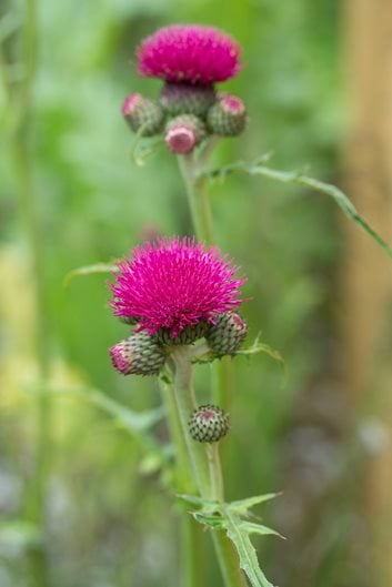 Related to the artichoke and cardoon, and not invasive like its cousin the bull thistle, this highly coveted thistle is absolutely stunning. In July and August, its deep crimson flowers hover above dramatic, deeply cut, bluish-green foliage on robust, upright stems. Equally at home along the water's edge or in a prairie-style perennial border, this giant thistle adds an air of whimsy to a garden in need of summer color, and also makes a wonderful cut flower. Pair it with a perennial that has smaller, rounded foliage, like blue false indigo (Baptisia australis) for textural contrast. This is a must-have for all the plant nerds out there.