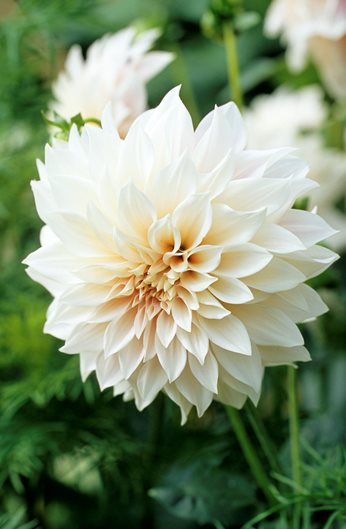 'Café au Lait' is a must-have for any dahlia lover. This highly sought after cultivar produces dinner-plate-sized flowers from June until frost. It ranges in color from creamy beige to peachy blush and has become a favorite of florists in recent years. Grow for cut flowers and combine it in a bouquet with 'Limelight' hydrangea (panicle hydrangea) and black hollyhock (Alcea rosea 'Nigra'. You can grow it as an annual in cooler zones, or dig tubers in the fall and store for replanting the following spring.