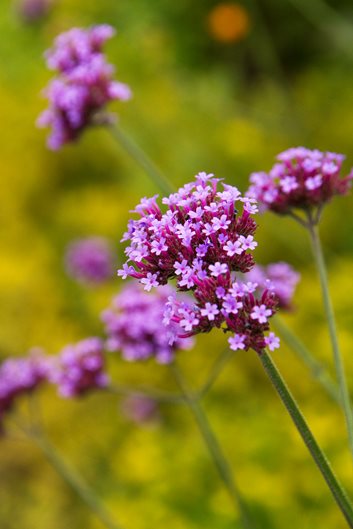 This biennial/perennial has slender stems topped with tufts of pink-purple flowers. It’s a favorite of all nectar feeders and the seeds attract small birds (especially goldfinches), so plant it where you can observe it during the summer. Caution: It has been known to seed around a bit, and in warmer zones it can be invasive.