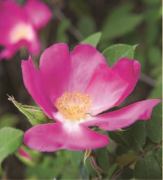 California’s many native roses naturally form thickets of upright thorny stems and are best used to create barriers and wildlife habitats. This one, Rosa woodsii var. ultramontana, has attractive pink blossoms followed by red to orange rose hips in the fall.
