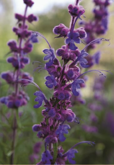 Evergreen subshrub (Trichostema lanatum), 3 to 5 feet tall and equally wide, is nearly ever-blooming but difficult to keep around for long. Native to sunny, warm, well-drained chaparral slopes. Let self-sown seedlings survive; they generally perform well.