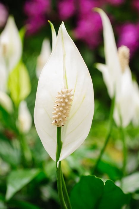 Peace lily is one of the most popular houseplants for good reason: in addition to its exotic blooms and luxurious foliage, it's also one of the easiest flowering indoor plants to grow. This tropical plant—which is not a true lily—is also known as spath lily, Madonna lily, or white sails.