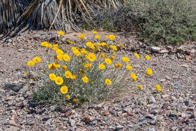 This annual, biennial, or short-lived perennial produces silver-green foliage and cheerful yellow flowers that resemble marigolds. Plants bloom over an exceptionally long period, from late spring to fall. Use this Southwest native wildflower as a filler plant in rock gardens, beds, and curbside strips.