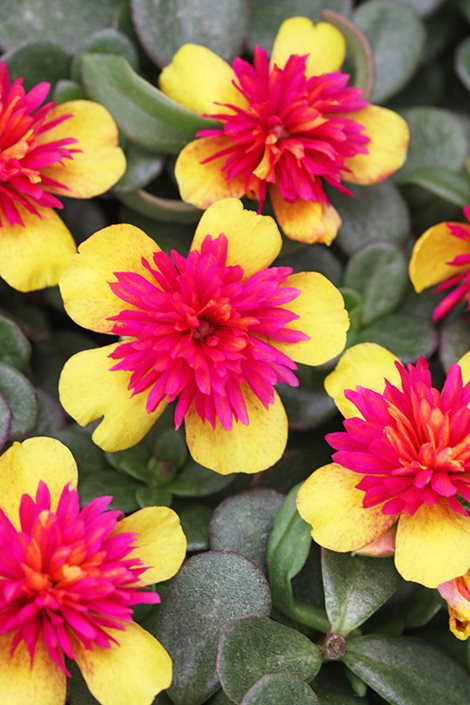 With the growing popularity of succulents in recent years, portulaca deserves a place in the landscape. The cheerful flowers on this sun lover come in an array of pastel and vibrant tropical hues, offering weeks of continuous bloom from summer to frost. Heat and drought-tolerant, this virtually carefree plant thrives in high heat and low humidity conditions.