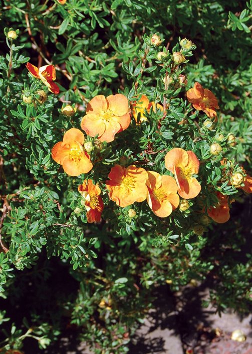 Add structure and color to the landscape with long-blooming cinquefoilPotentilla, also called shrubby cinquefoil or bush cinquefoil, is one of the most popular landscape shrubs. It is valued for its long bloom time, exceptional hardiness, and carefree nature. Tolerant of a wide range of growing conditions, this sturdy plant stands up to drought, air pollution, and salt air, making it ideal for urban environments and beachfront locations. Despite its toughness and reliability, potentilla isn’t suited to southern regions with hot, humid summers.