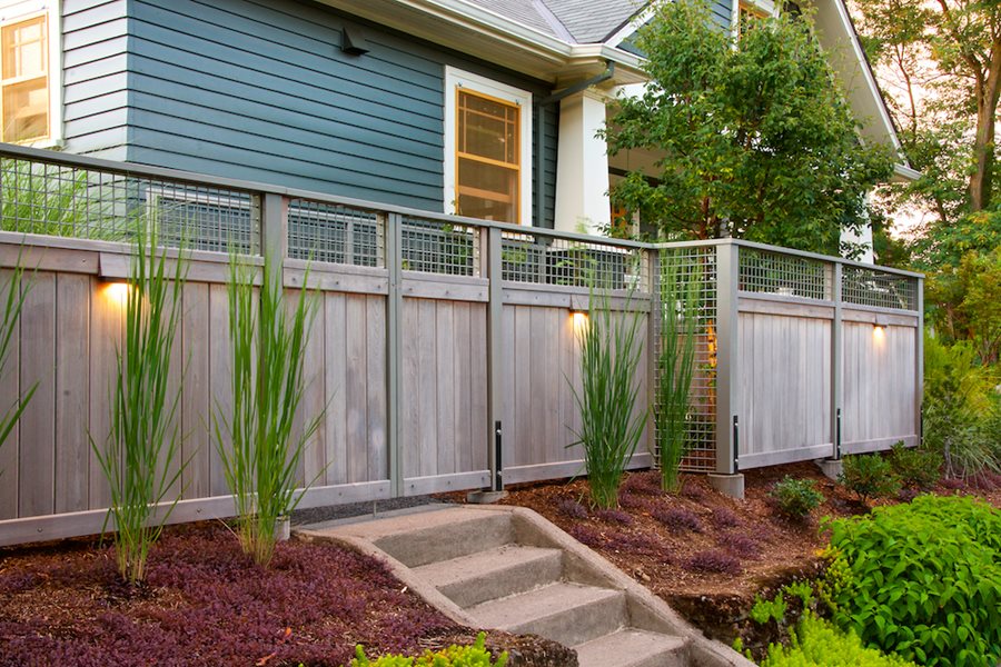 - Fencing, either solid or with openings to allow light in. Materials can include wood, bamboo, metal, wire mesh, vinyl, or composites.